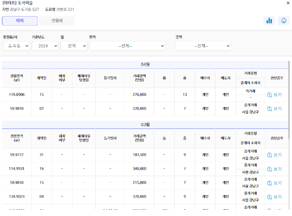 강남에 있는 도곡레슬 아파트를 눌렀는데요.