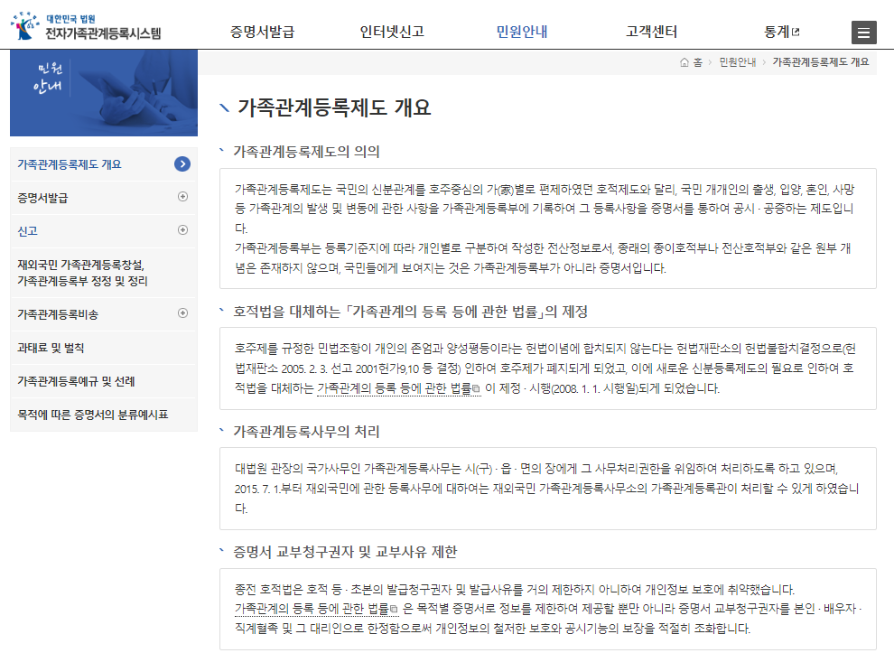 기본 증명서는 가족 구성원 관계를 증명할 때 사용되는데요.