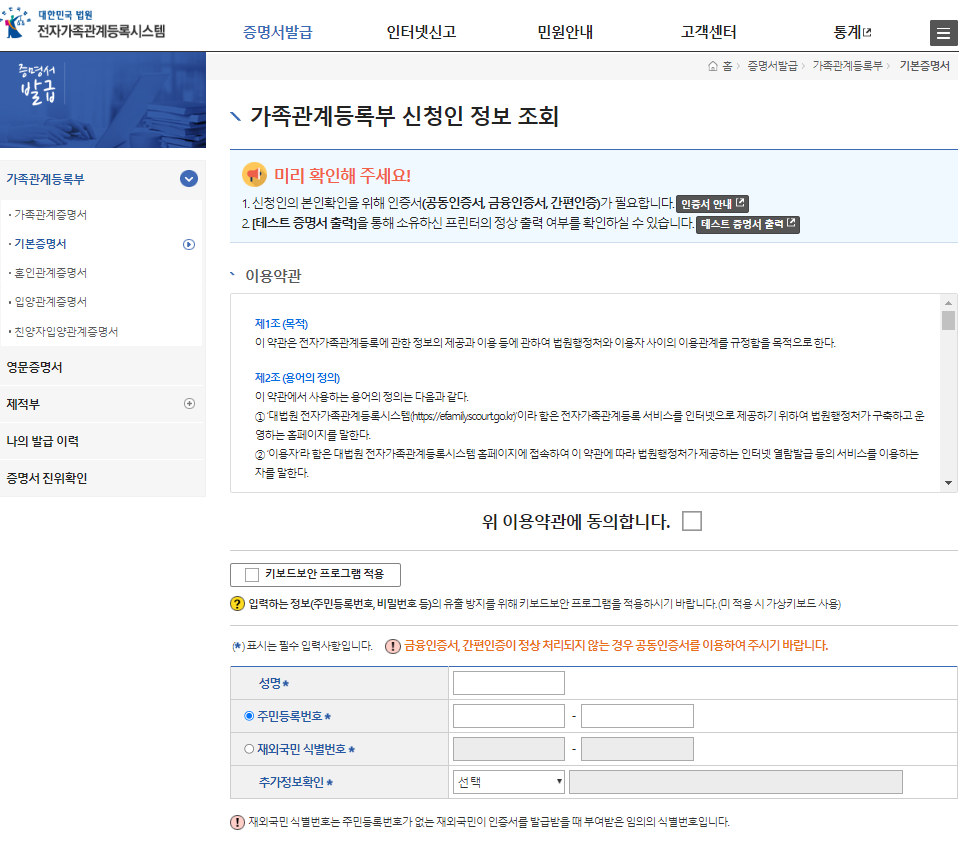 기본 증명서 인터넷 발급은 매우 간단합니다!