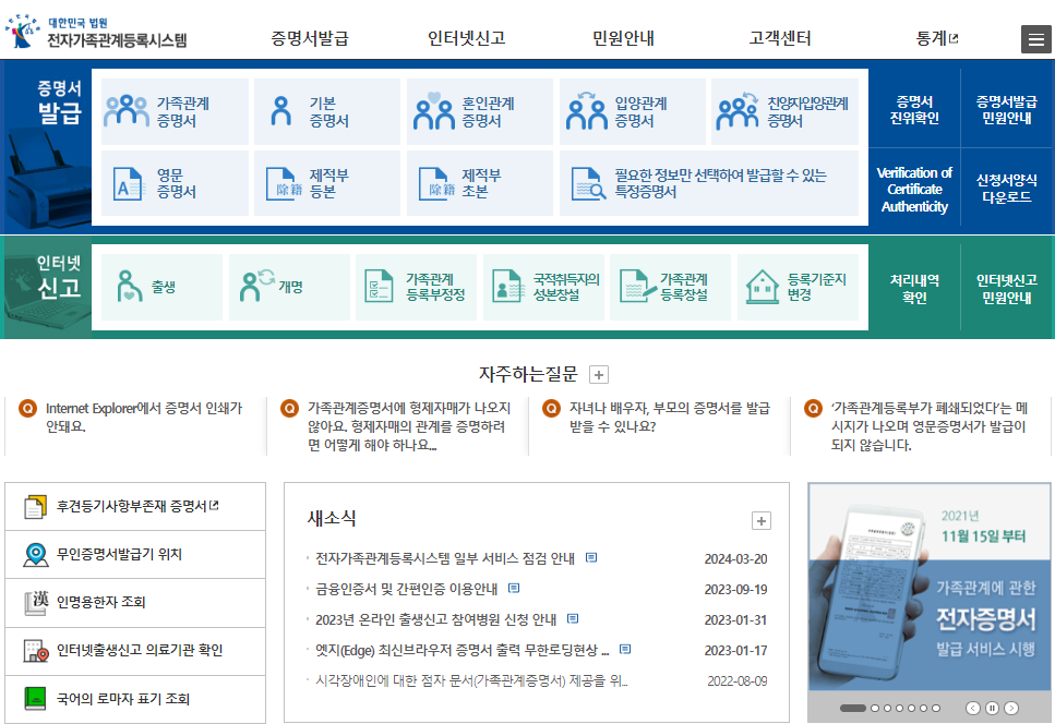 "가족 관계 증명서 필요하다는데 동사무소 가야되나..?" "가족 관계 증명서 편하게 받을 수 있는 방법 없을까..?" 사회 생활 시작하면서, 여러 서류가 필요하게 되는 것 같습니다. 불과 몇 년전만