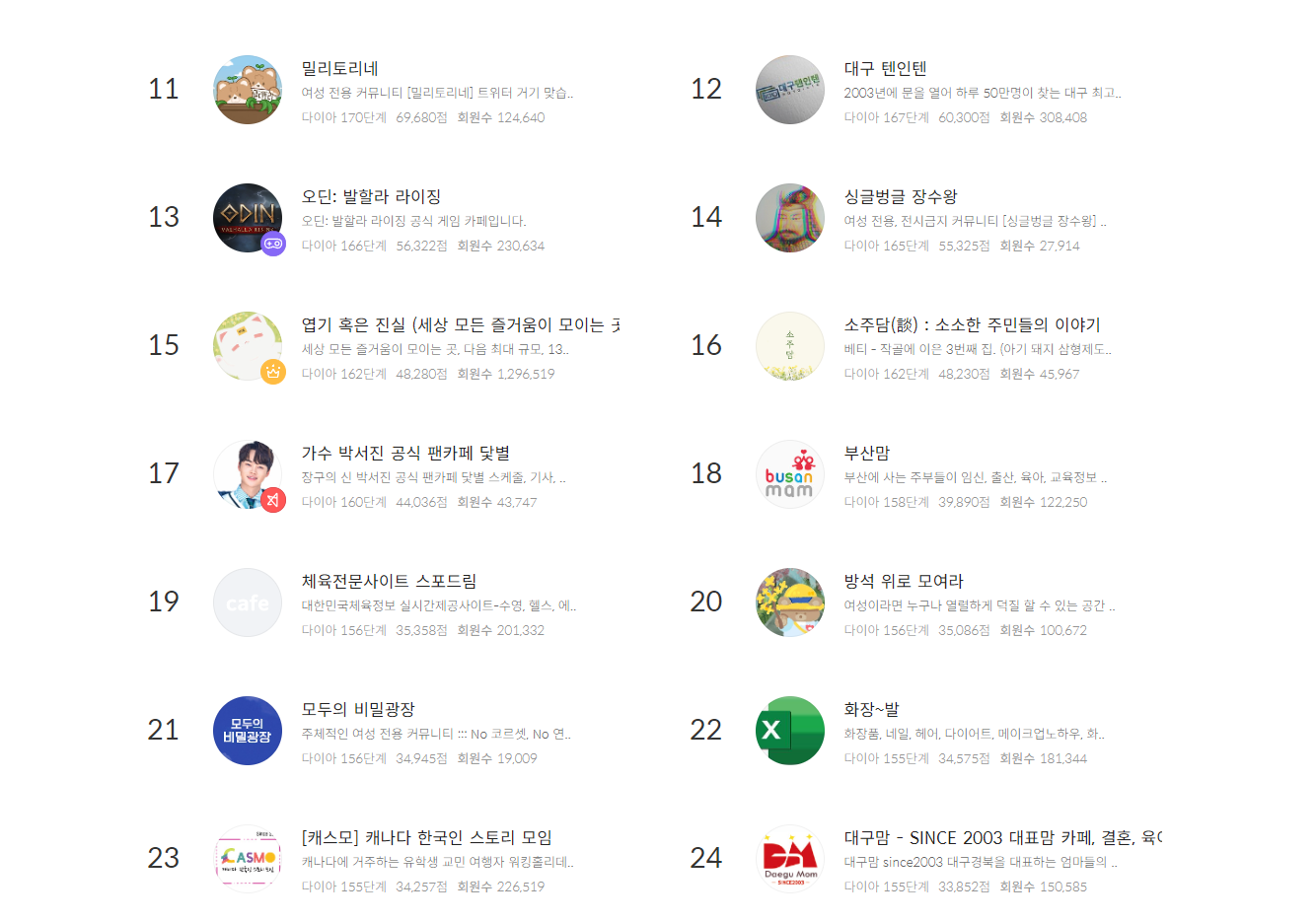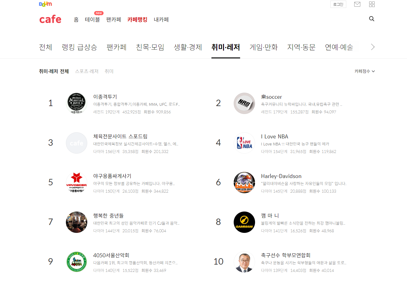 다음 카페에는 다양한 주제를 다루는 수백만 개의 카페가 있으므로 사용자는 자신의 관심사와 관련된 커뮤니티를 쉽게 찾을 수 있습니다.