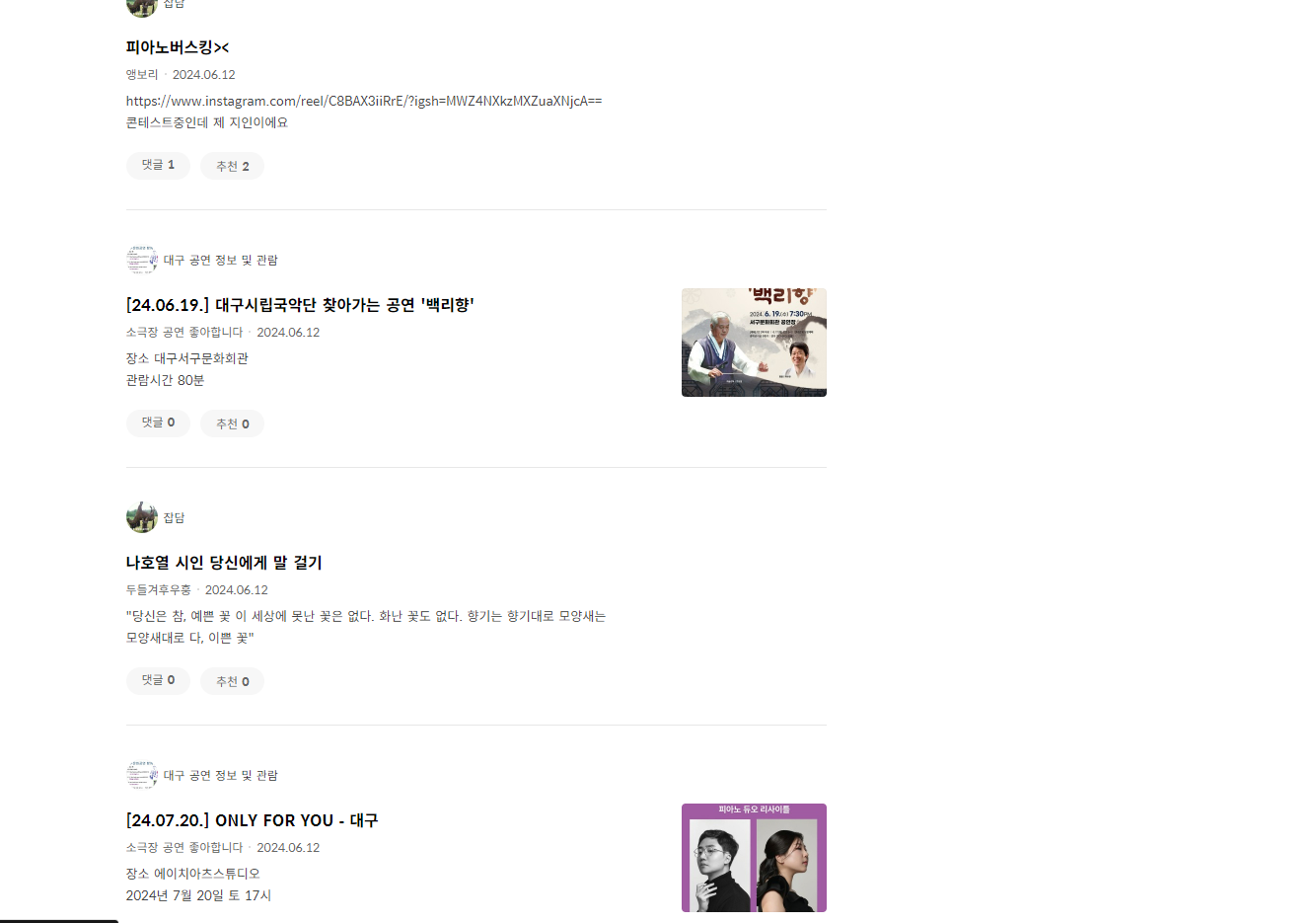 다음 카페의 대부분 커뮤니티는 매우 활발하며, 사용자들은 매일 새로운 콘텐츠를 게시하고 서로 소통합니다.