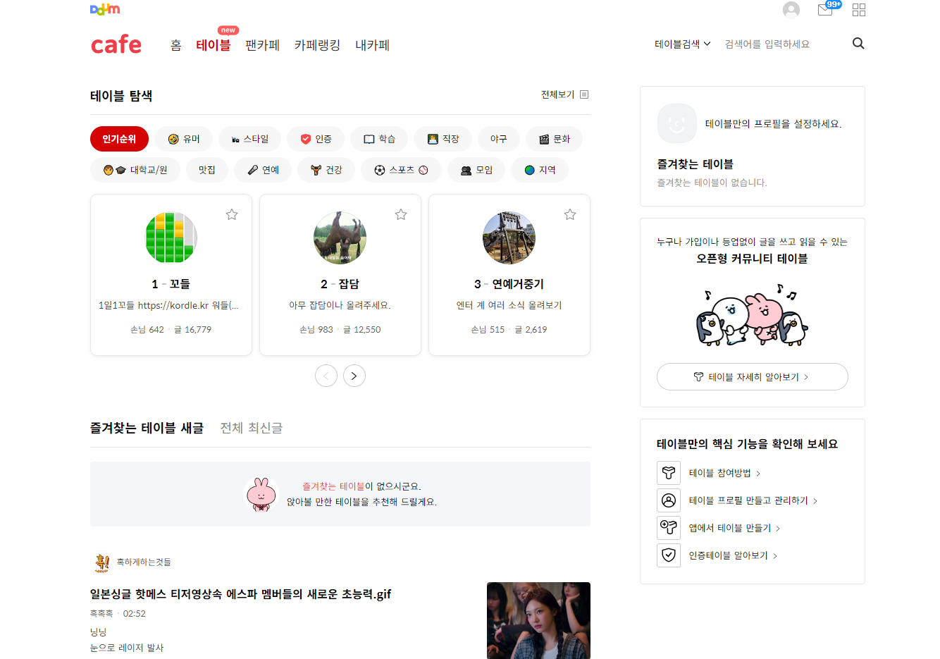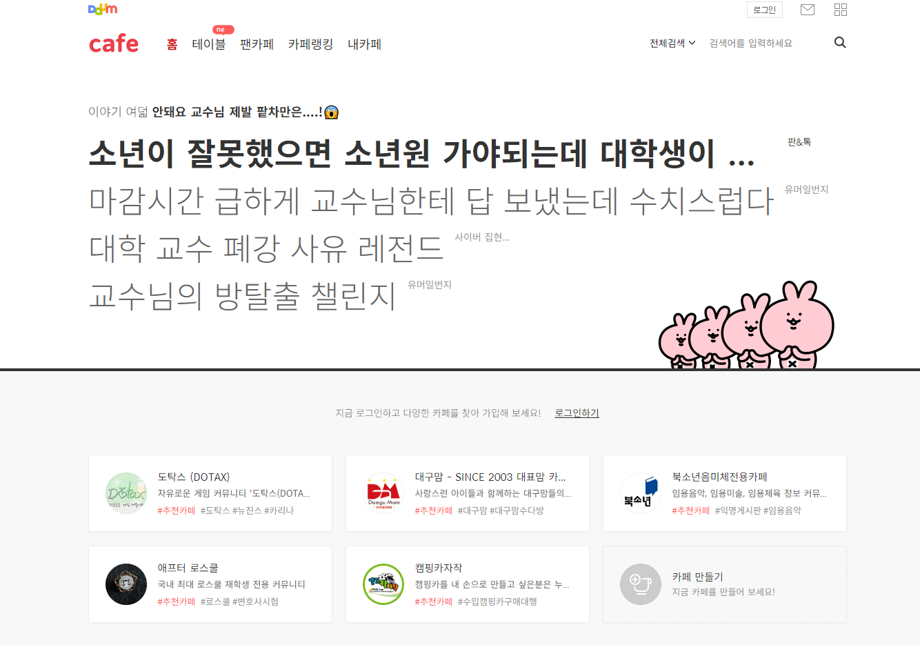 다음 카페는 대한민국에서 가장 인기 있는 온라인 커뮤니티 중 하나로