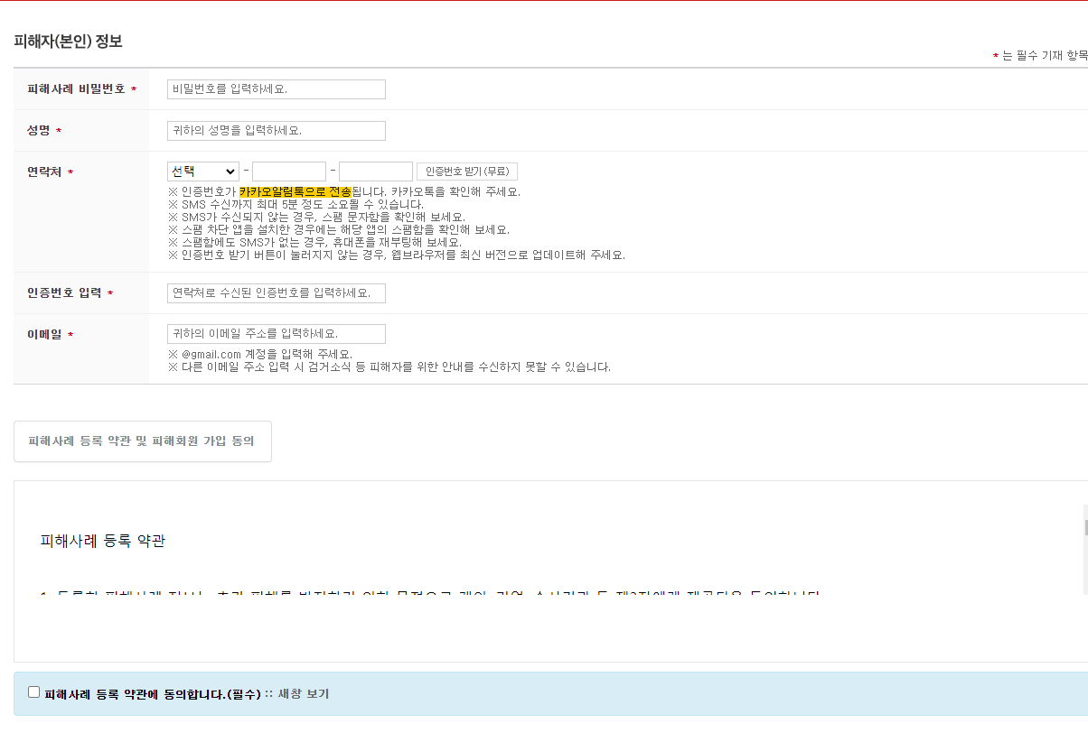 연락처 또는 계좌번호만 입력만으로 사기 피해사례를 검색하실 수 있으니 꼭 체크해보세요!