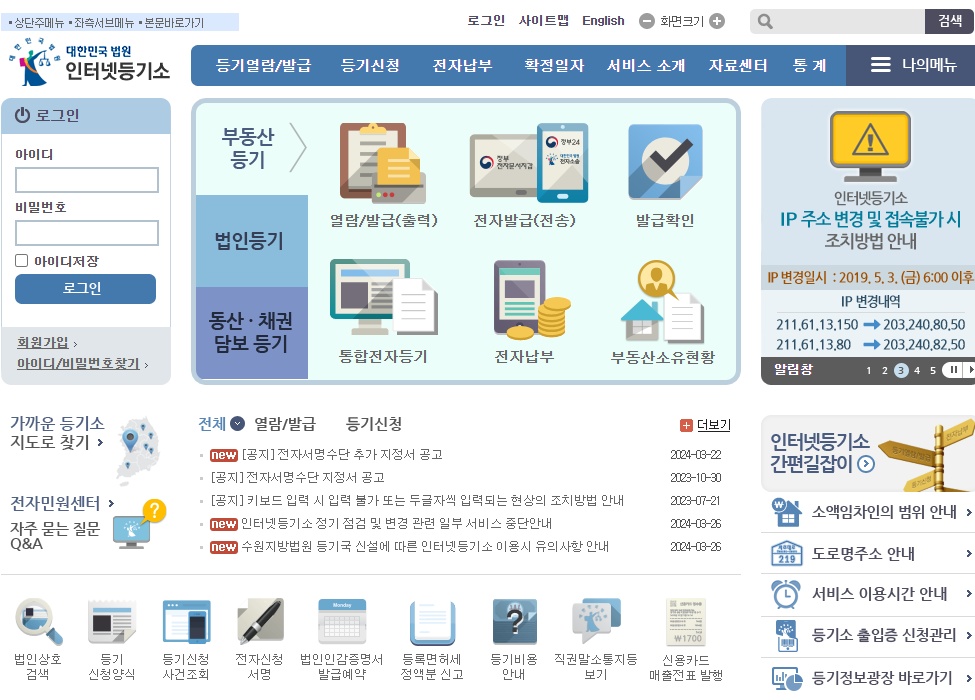 인터넷 등기소 링크는 아래를 통해서 접속하실 수 있습니다.
