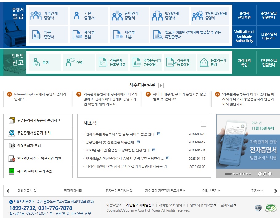 대한민국 법원 전자가족관계등록시스템ED[1/2]
