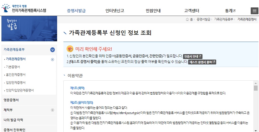요즘에는 가족 관계 증명서도 인터넷으로 매우 쉽게 발급 받을 수 있는데요.