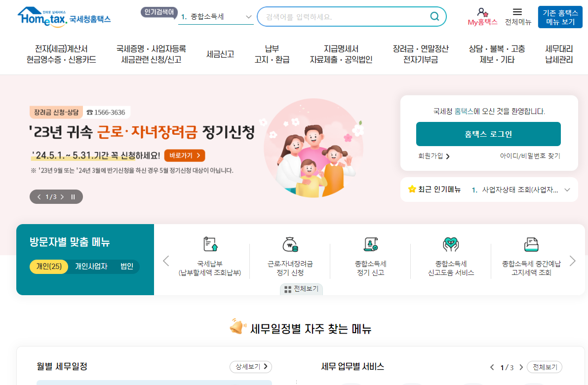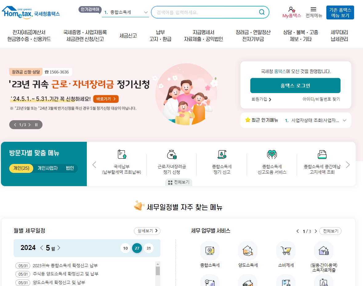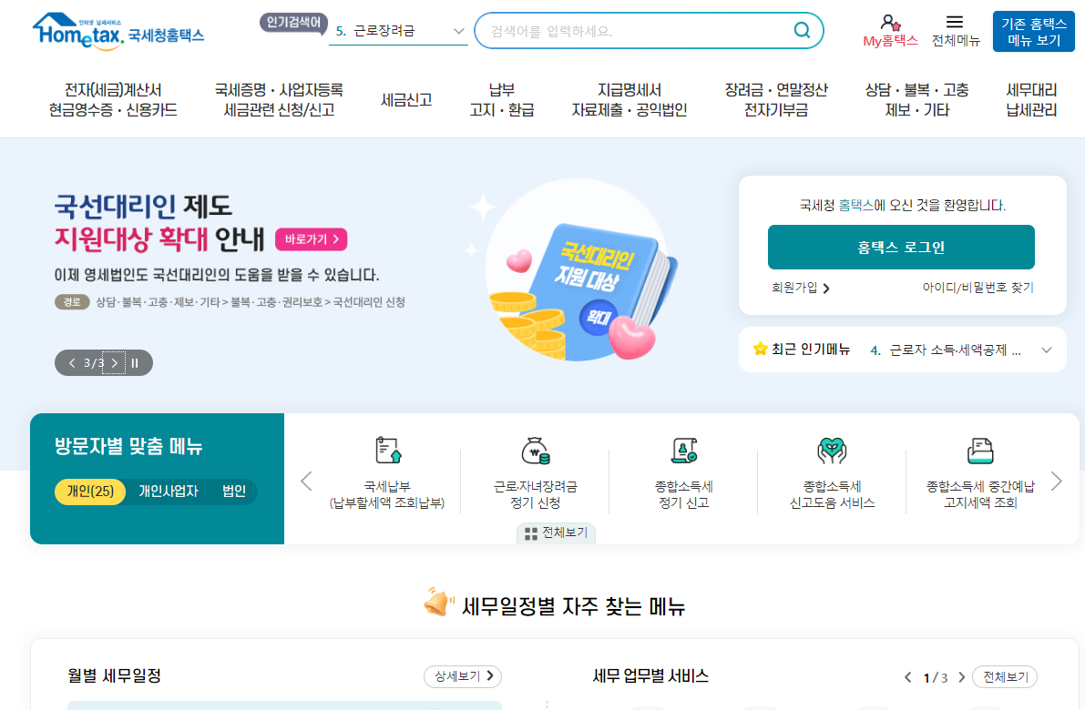 1) 국세청 홈택스에 접속합니다.