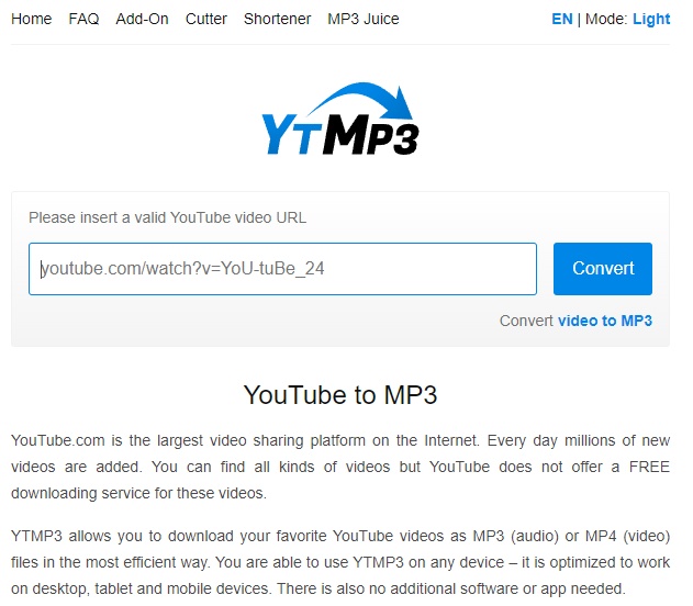 YouTube to MP3 YouTube.com is the largest video sharing platform on the Internet. Every day millions of new videos are added. You can find all kinds of videos but YouTube does not offer a FREE downloading service for these videos. YTMP3 allows you to downl