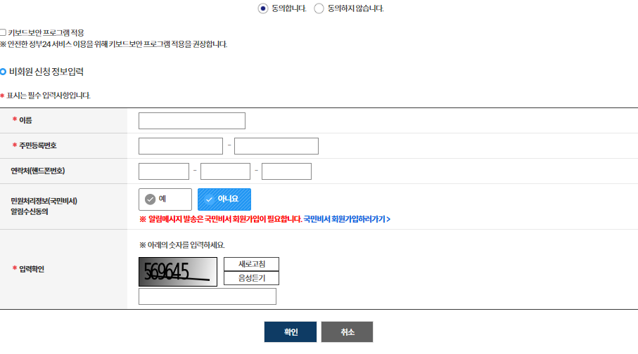 비회원일 경우, 아래처럼 '비회원 로그인' 클릭 후 개인정보 입력