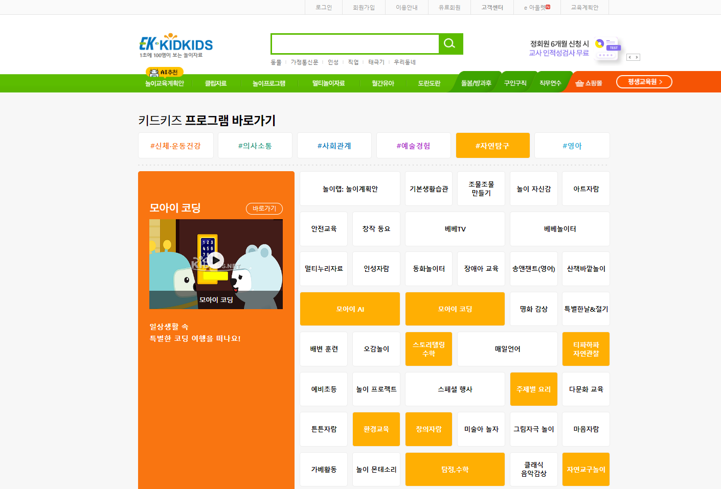 다양한 프로그램과 교육 자료를 제공하고 있다 보니 다른 사이트 보다 확실히 방대하더라구요.