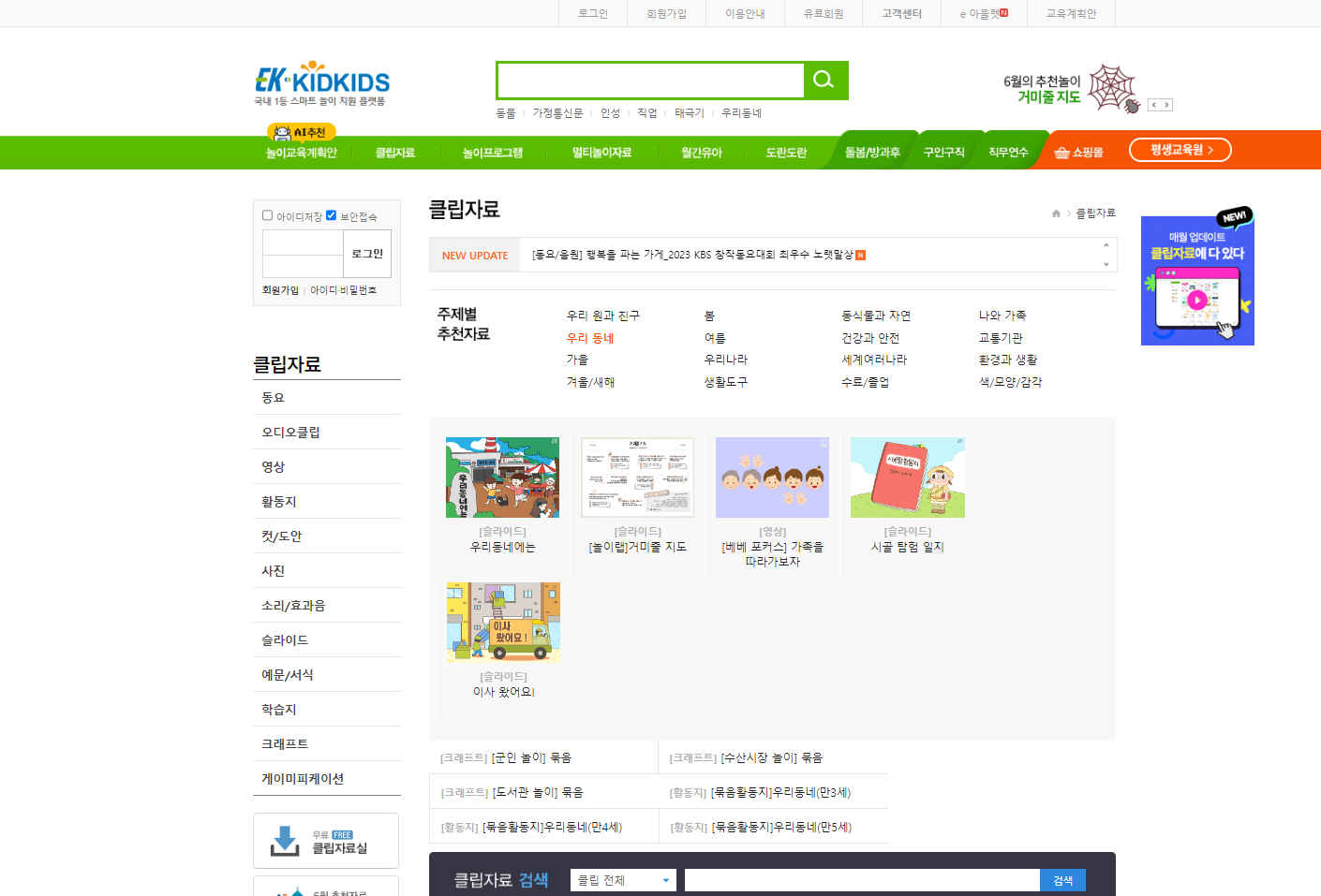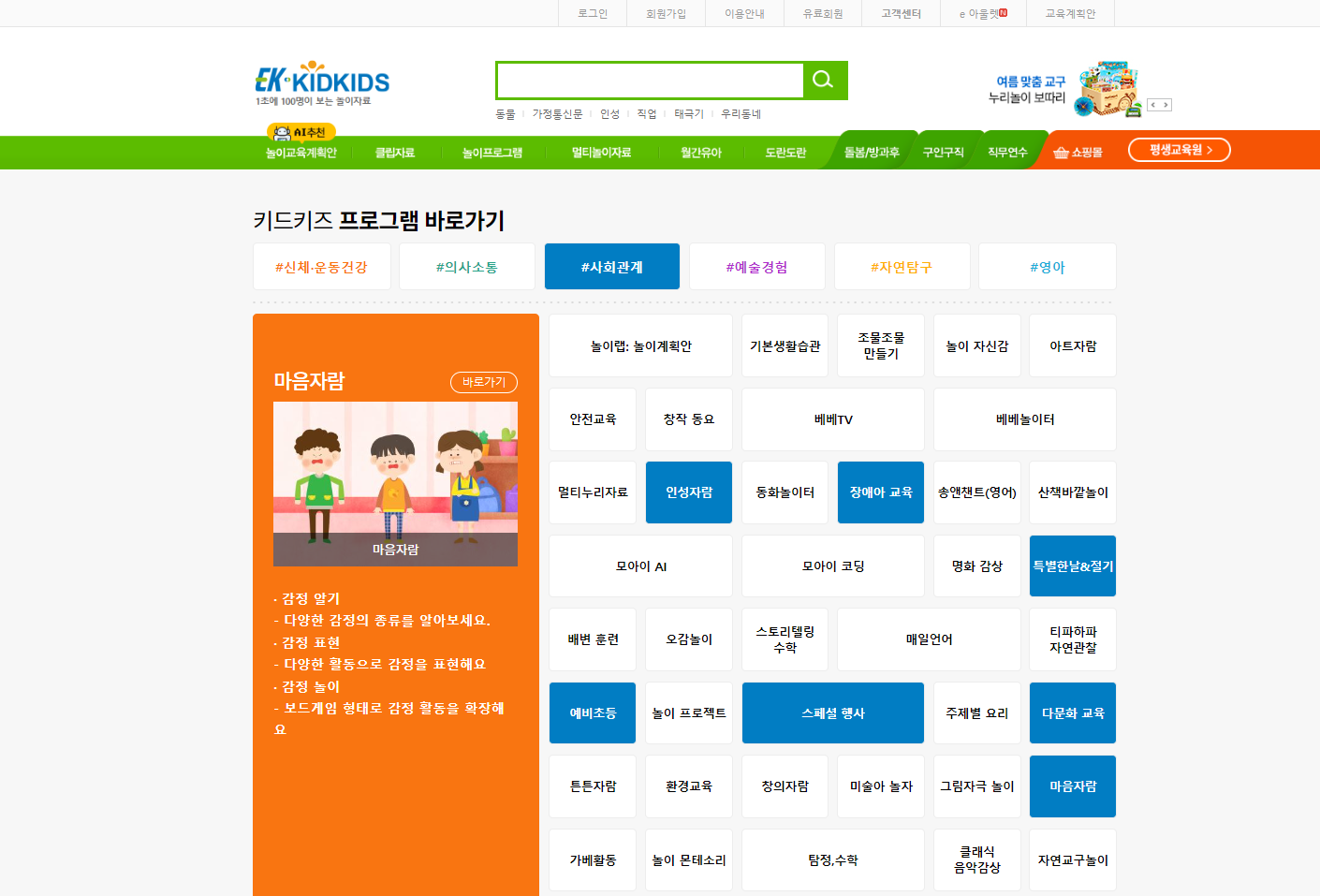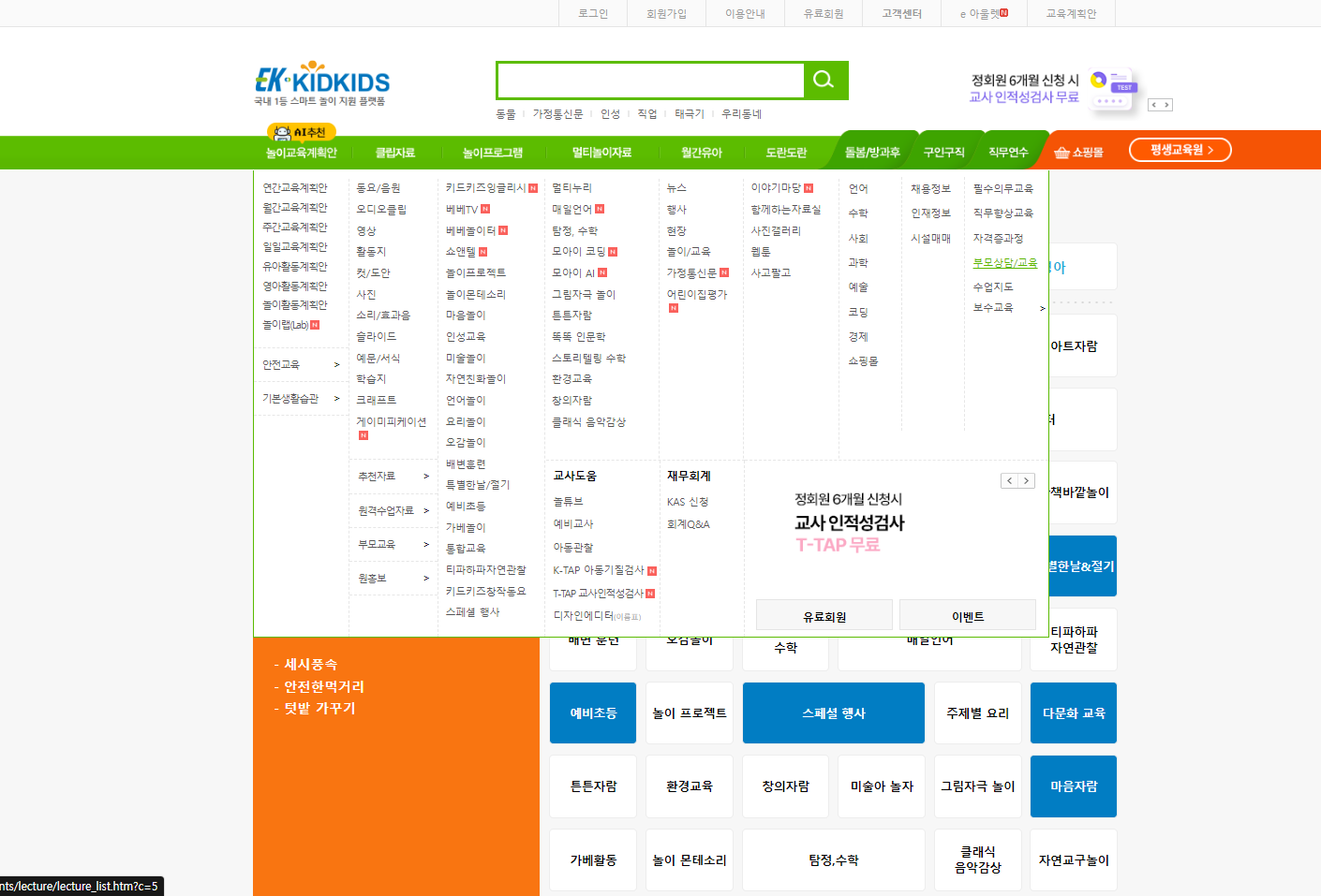 유아교육포털사이트, 교육자료, 쇼핑몰, 직무연수, 교육계획안, 누리과정