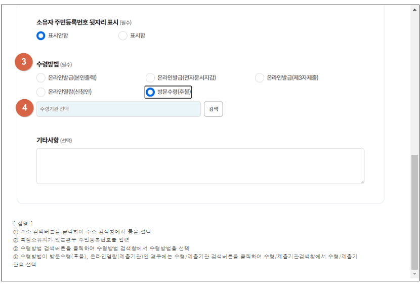step3. 발급받으실 토지 대장의 정보 입력