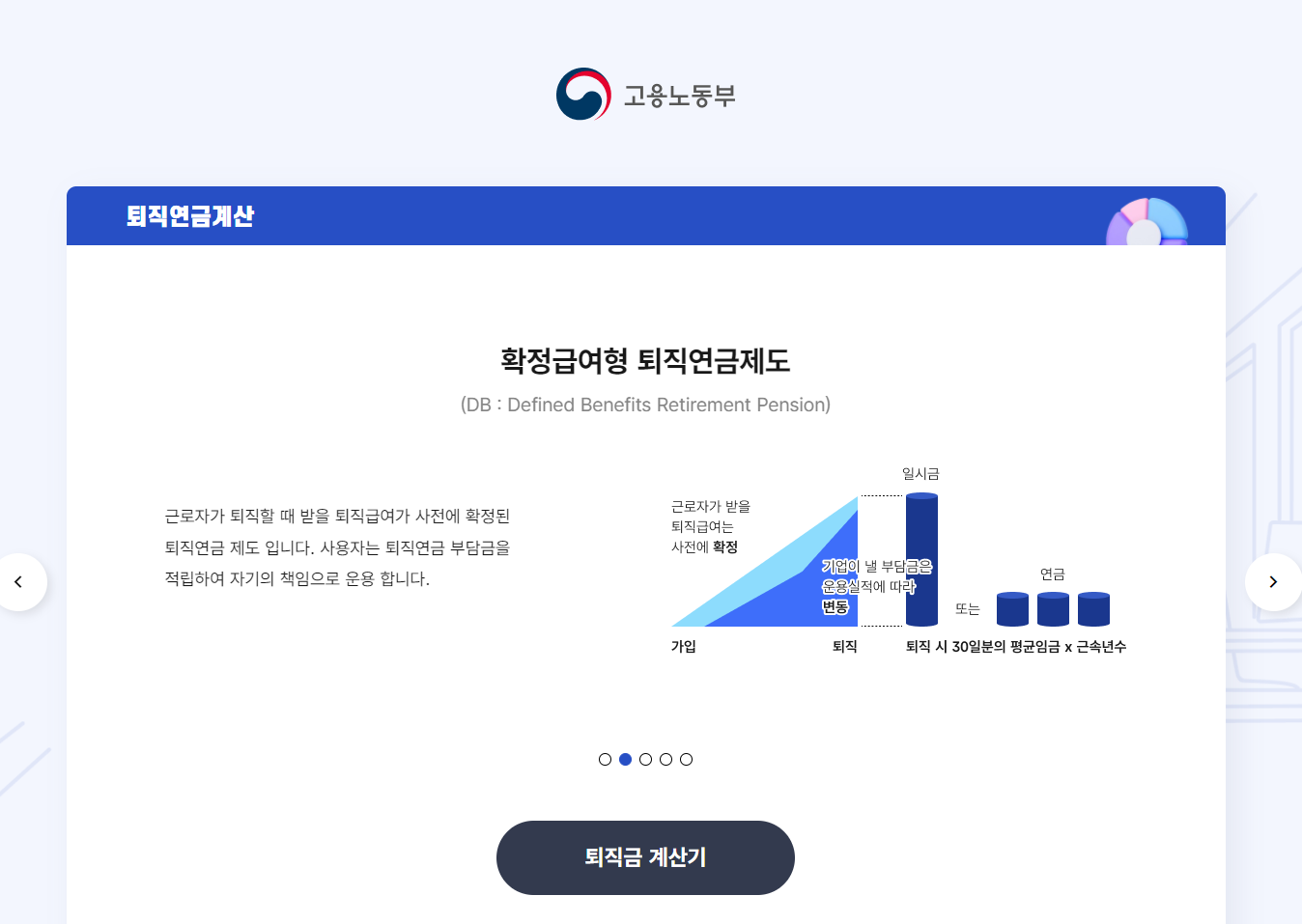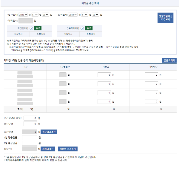 노동부 계산기를 통해서 퇴직금을 계산해보실 수 있어요