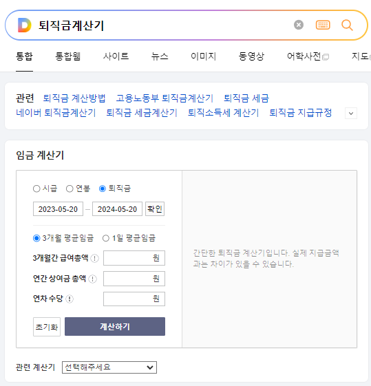 다음 포털에 퇴직금 계산기 검색하시면 바로 확인하실 수 있습니다.