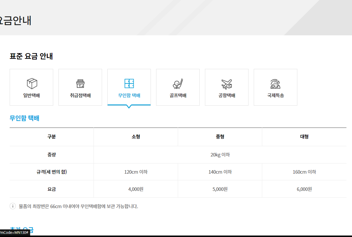 1) 택배 종류: 일반 택배, 냉장 택배, 특송 택배 등의 종류를 확인할 수 있습니다.