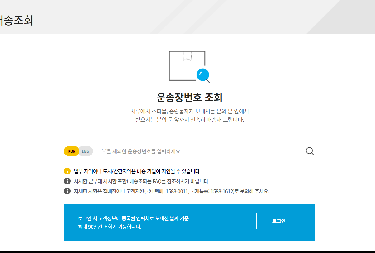 언제 어디서든 운송장 번호만 있으면 자신의 물품의 행보를 쉽게 확인할 수 있습니다.