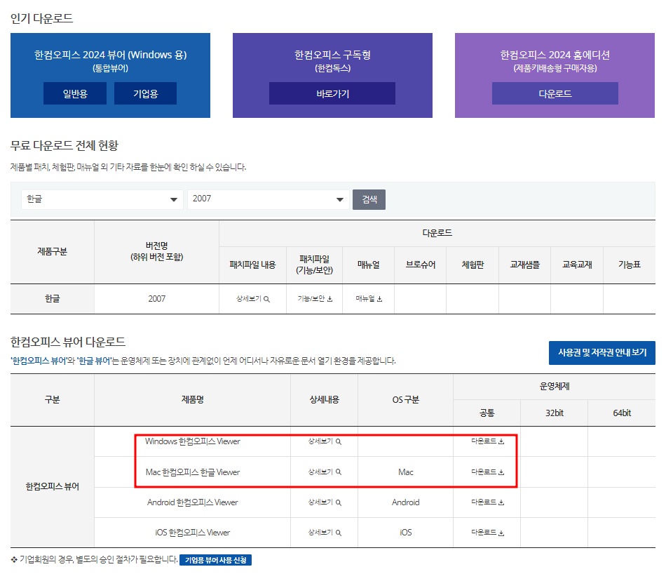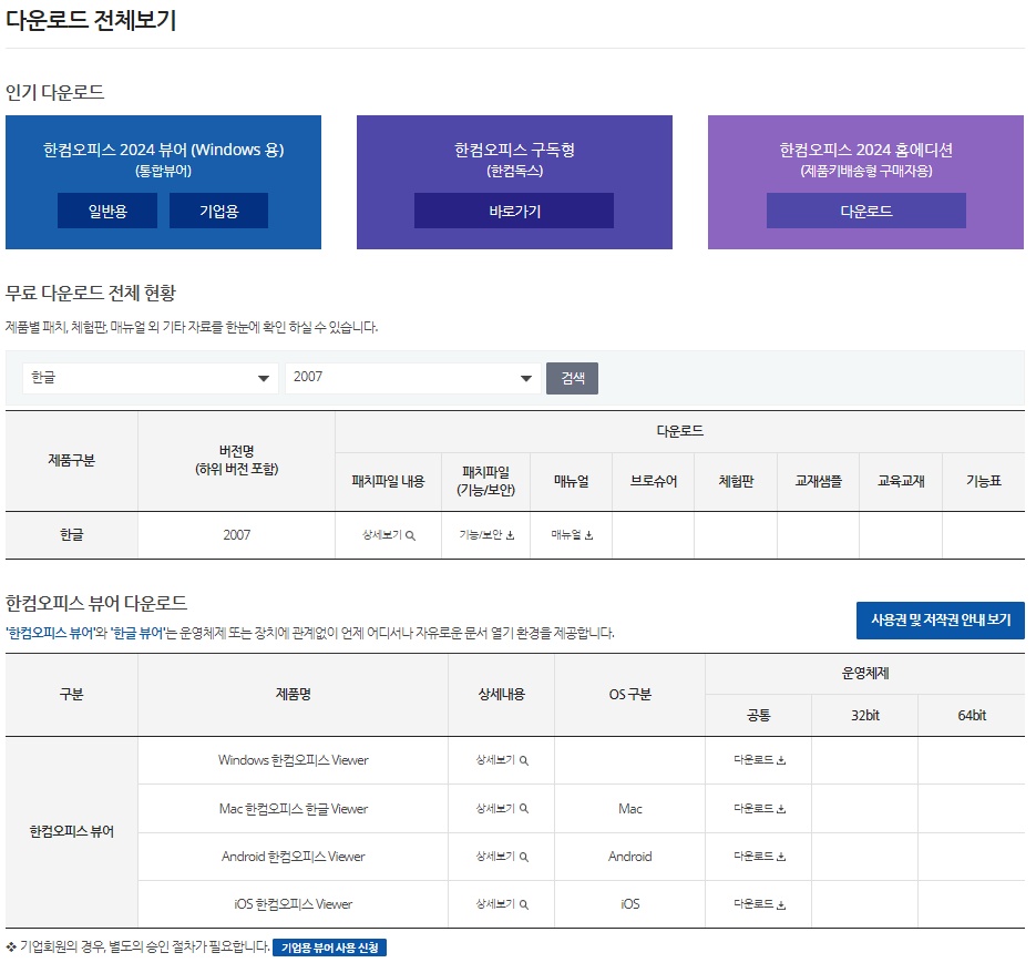 한컴 오피스, 3분 안에 뷰어 설치하고 무료 보기3. 한컴 뷰어 지원 목록