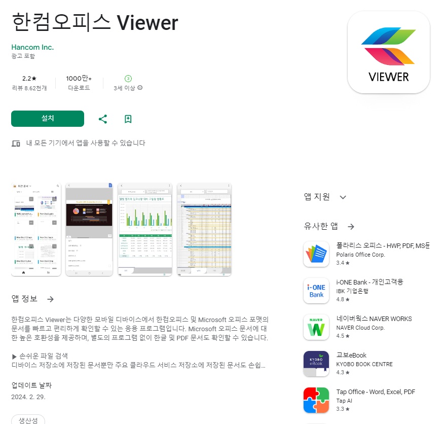 한컴 뷰어를 설치하는 방법은 매우 간단합니다.