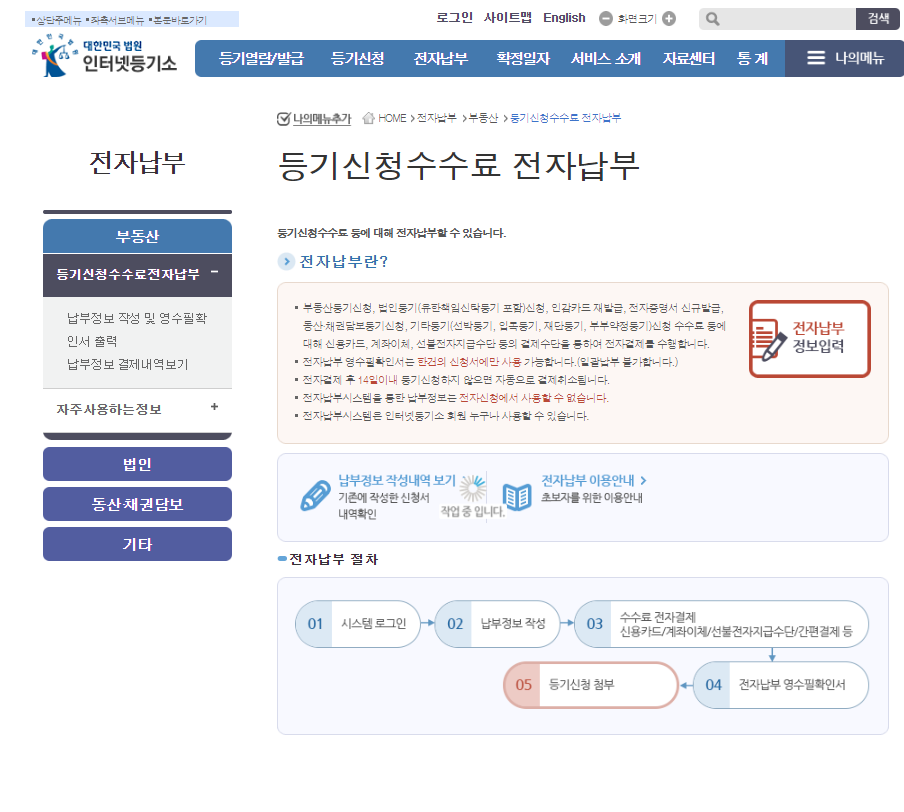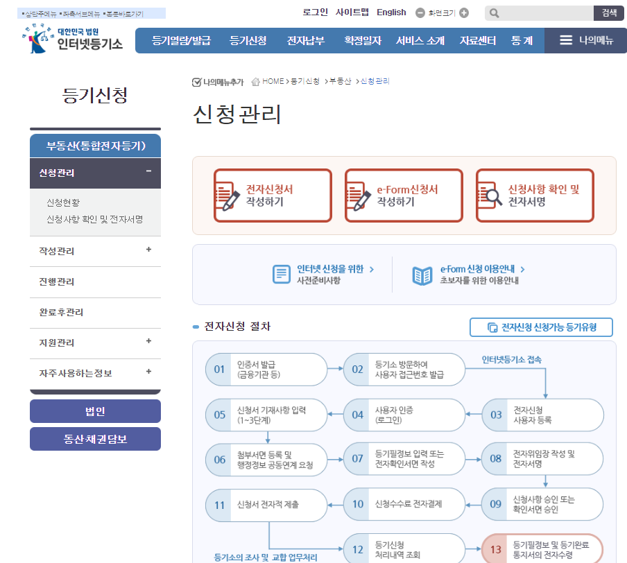 3) 등기부과에 방문하여 신청서를 작성하고 제출합니다.