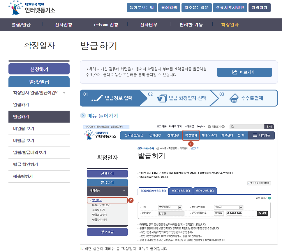 (2) 신청이 접수되면 서류를 심사하고, 문제가 없으면 확정일자를 부여합니다.